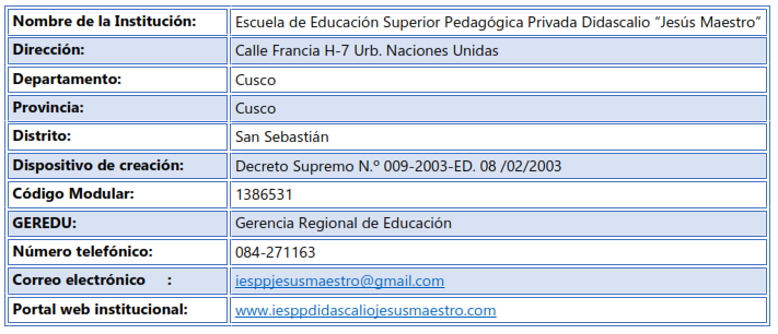 DATOS DE LA INSTITUCIÓN